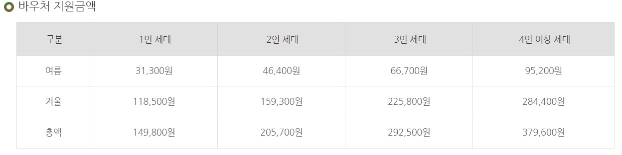 에너지 바우처 지원 금액