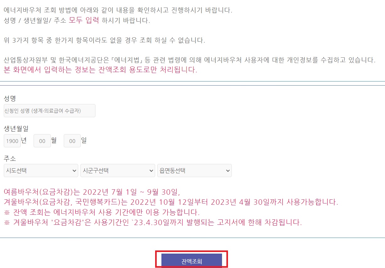 에너지 바우처 잔액조회 하는 법